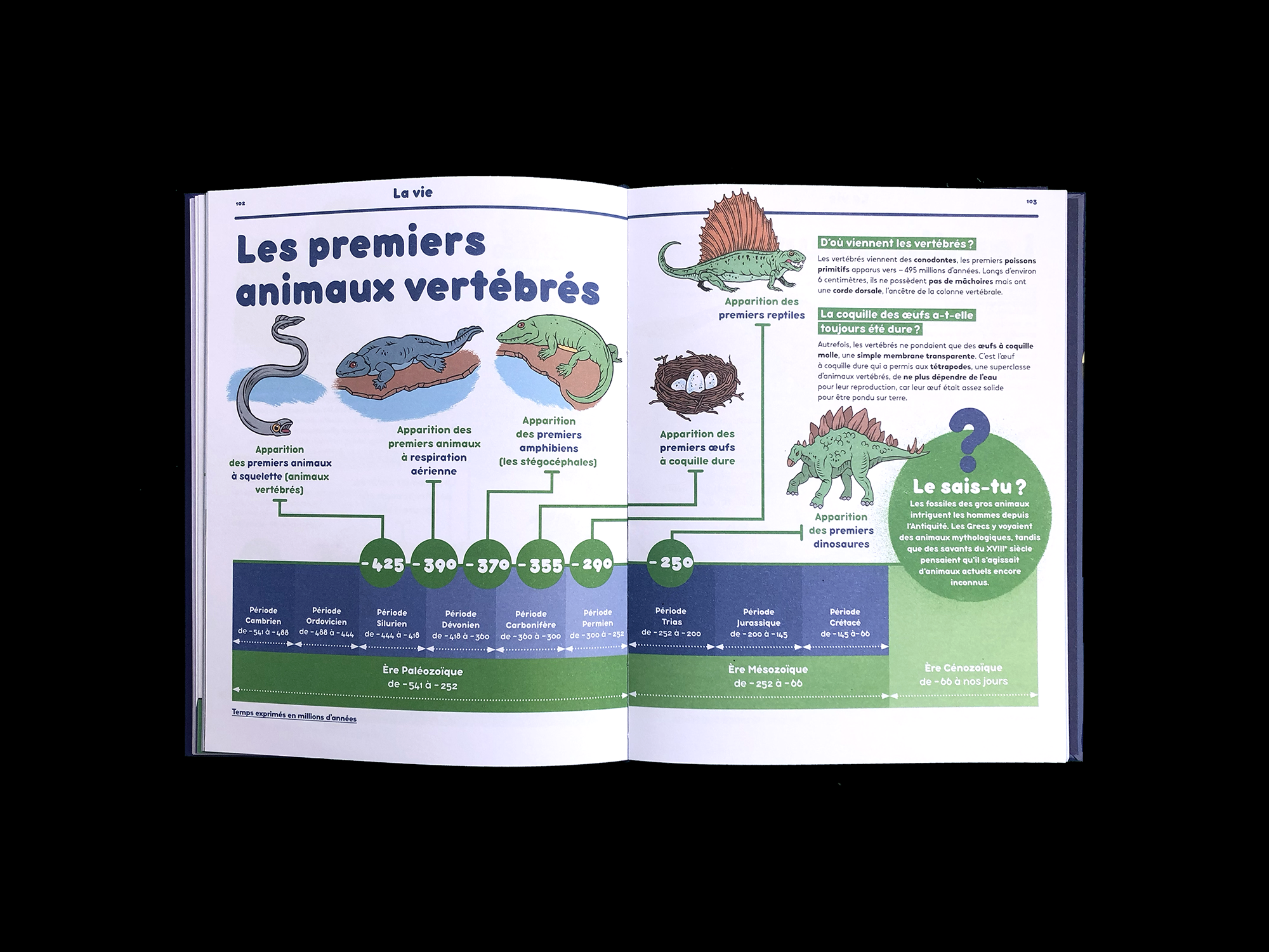 80 illustrations pédagogiques pour une encyclopédie jeunesse, sur les grands thèmes du corps, de l’Univers, la vie sur Terre...